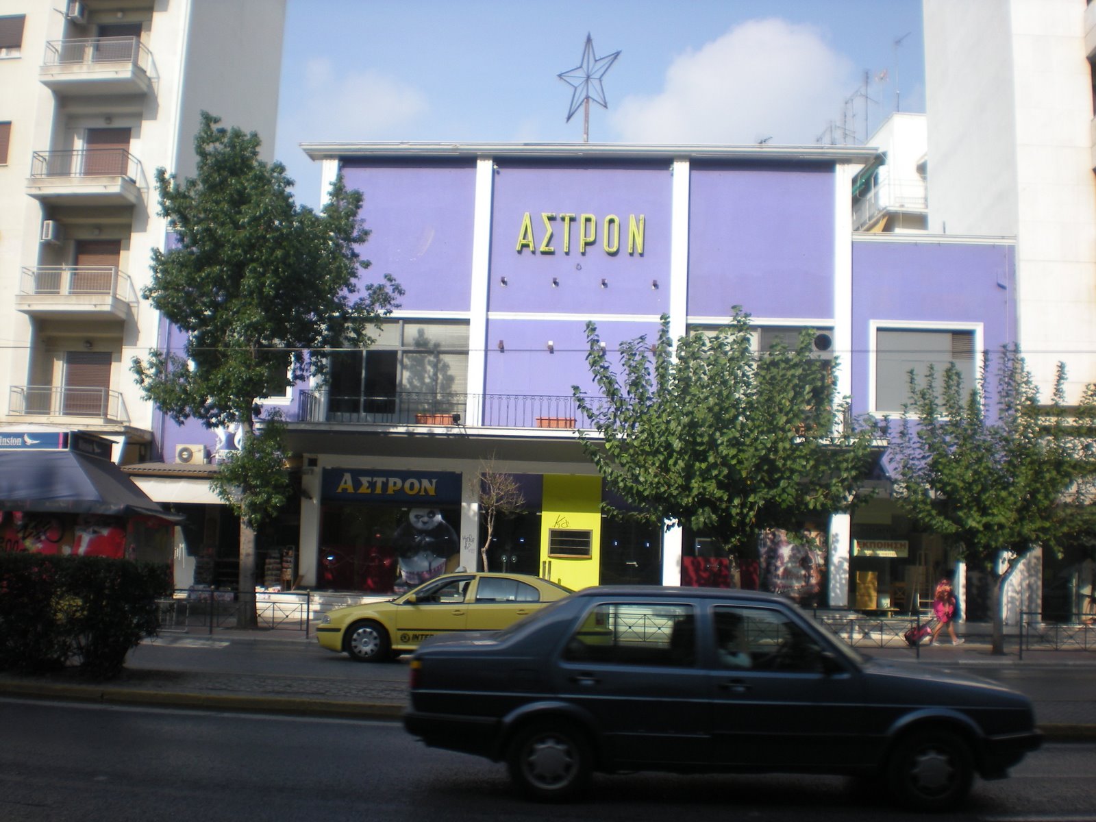 ΑΣΤΡΟΝ, Αμπελόκηποι (Α) Ίσως ο καλύτερος –αρχιτεκτονικά, τουλάχιστον– κινηματογράφος της Αθήνας, ο μόνος με επικλινή (και όχι με σκαλοπάτια) αμφιθεατρικό εξώστη, ο οποίος μάλιστα είχε και ακριβότερο εισιτήριο από της πλατείας. Δυστυχώς, για πολλά χρόνια υπήρξε κινηματογράφος με ατυχή προγραμματισμό (πολύ συχνά με «δεύτερες» ελληνικές ταινίες). Γνώρισε μια δεύτερη άνοιξη μετά τη ριζική ανακαίνισή του, προς το 2000, αλλά δεν κράτησε για πολύ. Προς κατεδάφιση… (Μάνος) Αναμνήσεις Ο Στέλιος από του Αμπελόκηπους θυμάται κάπου μέσα της δεκαετίας 60 που το εισιτήριο είχε πλατεία 7 δρχ και ο εξώστης που ήταν πιο φτηνός μόνο 6 δρχ (εξαιρείται το Αστρον στην Κηφισίας που είχε τον εξώστη πιο ακριβό). Οι κινηματογράφοι χωριζόντουσαν σε κατοιγορίες Α προβολής (ήταν οι πιο ακριβοί), Β προβολής και Συνοικιακοί. Αυτός πήγαινε σε Β προβολής που είχανε παράσταση 4-6, 6-8, 8-10, 10-12μμ, μαζί με τους φίλους στην πρώτη παράσταση που ήταν ακόμα πιο φτηνή. Τότε της μόδας ήταν ταινίες με Ηρακλή, Μασίστα, Σαμψών και φυσικά του Στιβ Ριβς. Αυτός και φίλοι έβλεπαν την πρώτη παράσταση και μετά μένανε και στη δεύτερη παράσταση να το ξαναδούνε. Κάπως έτσι βγήκε η έκφραση οι πρωινοί να φεύγουνε! Ο Δημήτρης θυμάται το 1963 την περιπέτεια "5 εβδομάδες σ'ένα αέροστατο". Ακόμα σε επανέκδοση "Η βασίλισσα της Αφρικής" με τους Χάμφρεϊ Μπόγκαρντ και Κάθριν Χέπμπορν. Η Αλεξάνδρα θυμάται το 1978 την επιτυχία με τον Τζον Τραβόλτα "Πυρετός το Σαββατόβραδο" και τη μουσικί των Bee Bees. Το 1979 τη άλλη επιτυχία του Τζον Τραβόλτα με την Ολίβια Νιούτον Τζον "Γκρίζ" με το επίσης πετυχημένο soundtrack. Θυμάμαι το 1984 τις ταινίες "Κρουλ". Το 1984 το "Έρωτας δίχως αύριο" με τον Τζεφ Μπρίτζες. Το "Ράμπο 2" η συνέχεια με τον Σιλβέστερ Σταλόνε το 1985. Το 1984 τη ταινία "Γκοστμπάστερς". Το 1985 "Καράτε Κιντ" η μεγάλη επιτυχία που είχε και συνέχειες. To 1986 τη χορευτική περιπέτεια "Λευκές νύχτες". Το 1985 τη κωμωδάι "Και τη μία και τη άλλη" με τον Ντάντλεϊ Μουρ. Το 1986 τη περιπέτεια "Οι θησαυροί του Σολομώντα" με τον Ρίτσαρντ Τσαμπερλέιν. Το 1988 τη δικαστική περιπέτεια "Οι ύποπτοι". Το 1988 το θρίλερ του Ρίντλεϊ Σκοτ "Κάποιος να με προσέχει". Το 1994 τη ταινία του Μπράιαν Ντε Πάλμα "Υπόθεση Καρλίτο" με τον Αλ Πατσίνο.
